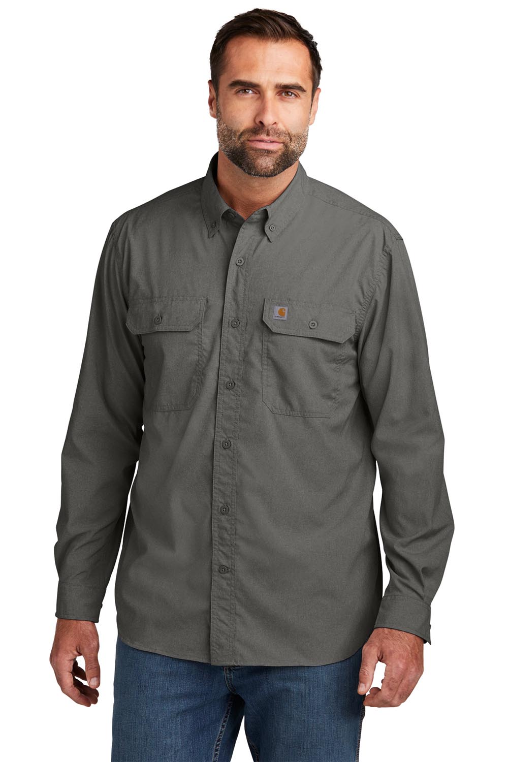 - Carhartt label sewn on left chest pocket