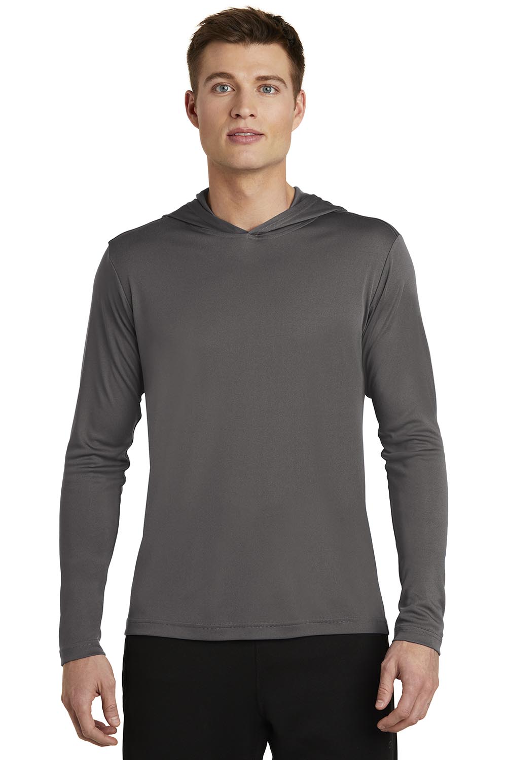 This lightweight hooded pullover locks in color and wicks moisture. It’s versatile enough for year-round wear.